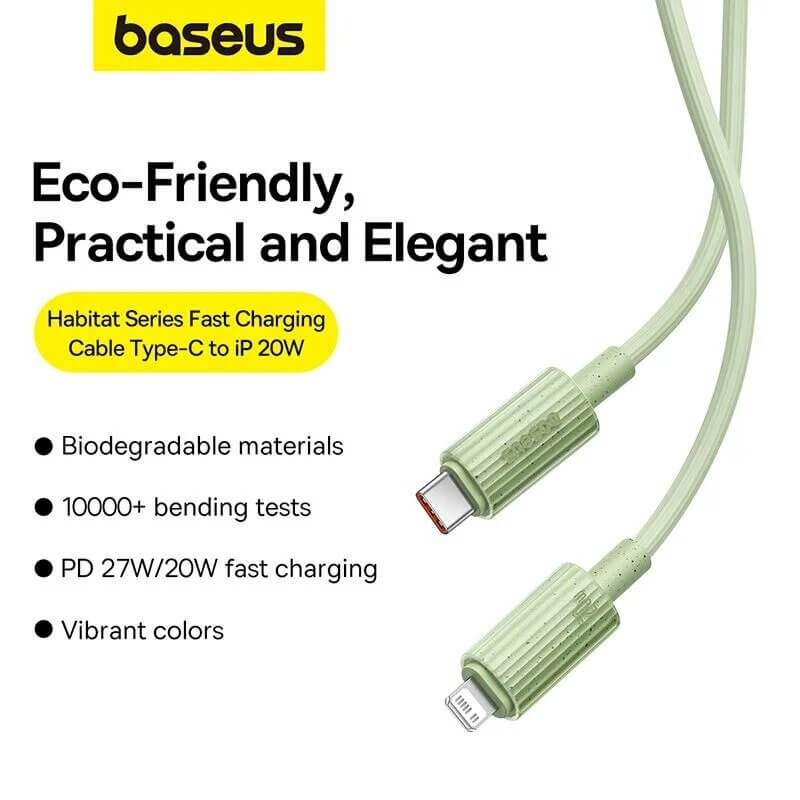 In an era where speed and efficiency are critical, the Baseus Habitat Series Fast Charging Cable Type-C to iPhone 20W in Natural Green emerges as an essential accessory for Apple users. Offering a robust blend of technology and style, this charging cable not only aims to optimize your charging experience but also brings a touch of modern aesthetics to your tech arsenal.